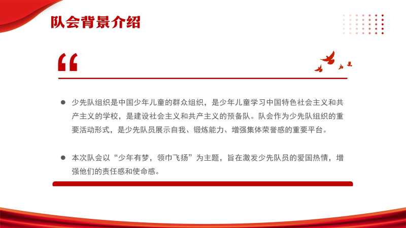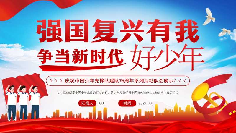 少年先锋建队76周年活动PPT模版20250920 教学课件 如果您喜欢本模板,可以点击这里免费升级成为VIP,全站模板一律5折,欢迎持续关注,精彩模板每天推送 预览结束,一共23页,请下载后查看 如果您喜欢本模板,可以点击这里免费升级成为VIP,全站模板一律5折,欢迎持续关注,精彩模板每天推送 资源下载此资源下载价格为19积分,请先登录如果链接失效,请将订单号发邮件3204167195@qq.com,我们会帮您处理 资源下载下载价格:19 积分VIP优惠:免费请先登录如果链接失效,请将订单号发邮件3204167195@qq.com,我们会帮您处理 0 主题班会