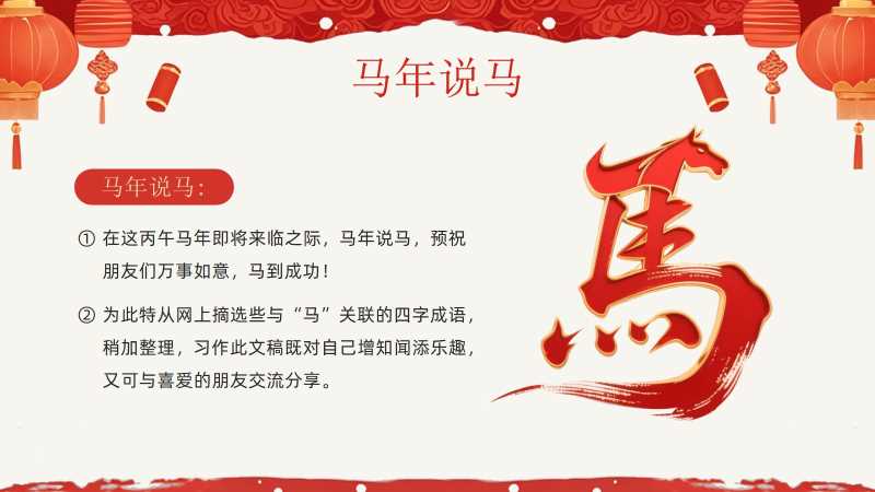 中国风马年成语介绍PPT模板20251222 教学课件 如果您喜欢本模板,可以点击这里免费升级成为VIP,全站模板一律5折,欢迎持续关注,精彩模板每天推送 预览结束,一共12页,请下载后查看 如果您喜欢本模板,可以点击这里免费升级成为VIP,全站模板一律5折,欢迎持续关注,精彩模板每天推送 资源下载此资源下载价格为19积分,请先登录如果链接失效,请将订单号发邮件3204167195@qq.com,我们会帮您处理 资源下载下载价格:19 积分VIP优惠:免费请先登录如果链接失效,请将订单号发邮件3204167195@qq.com,我们会帮您处理 0 教学课件